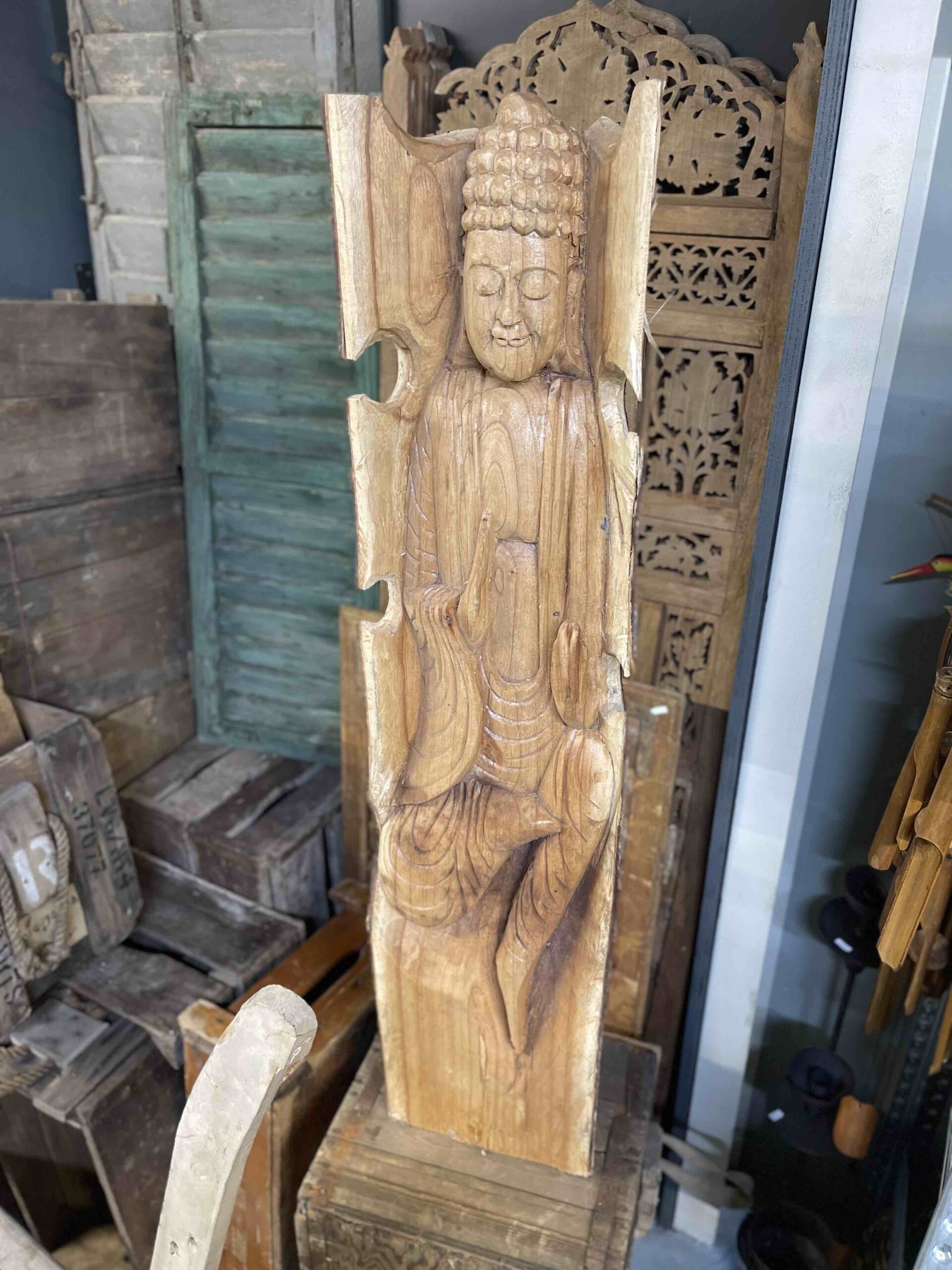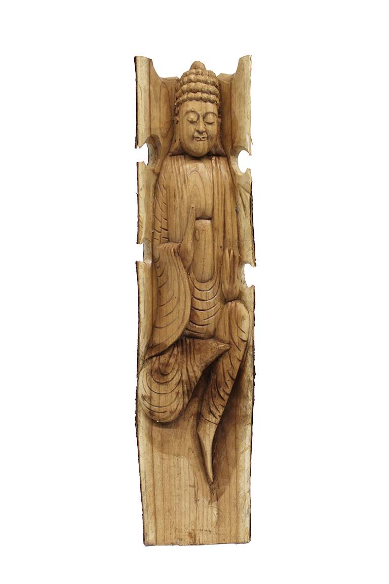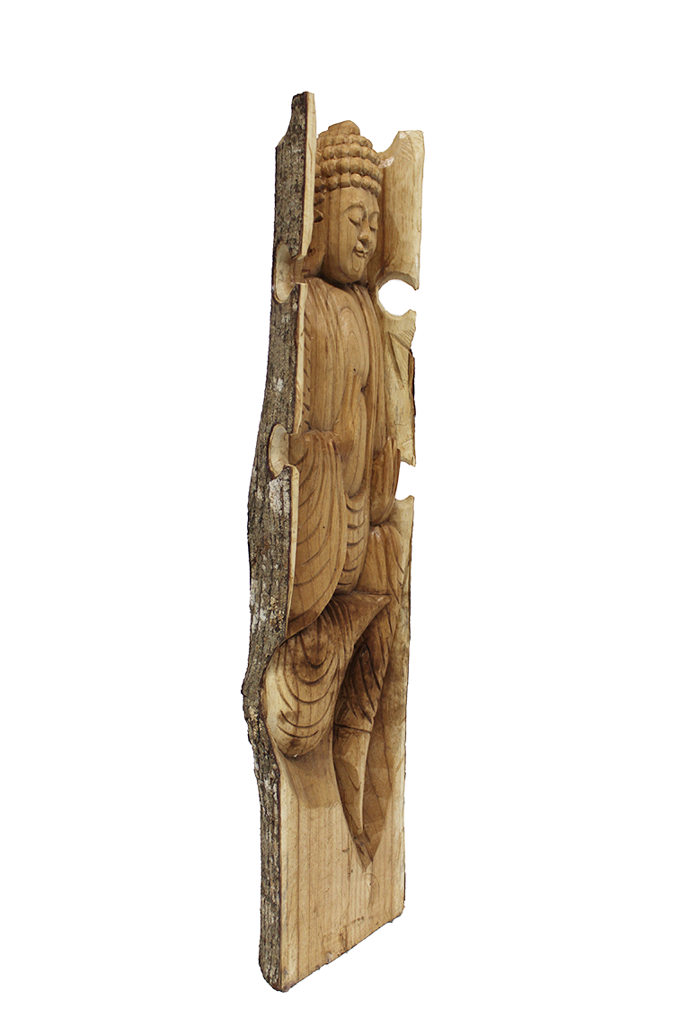 Deze prachtige Boeddha in stam XL is met veel zorg uit de stam gesneden.