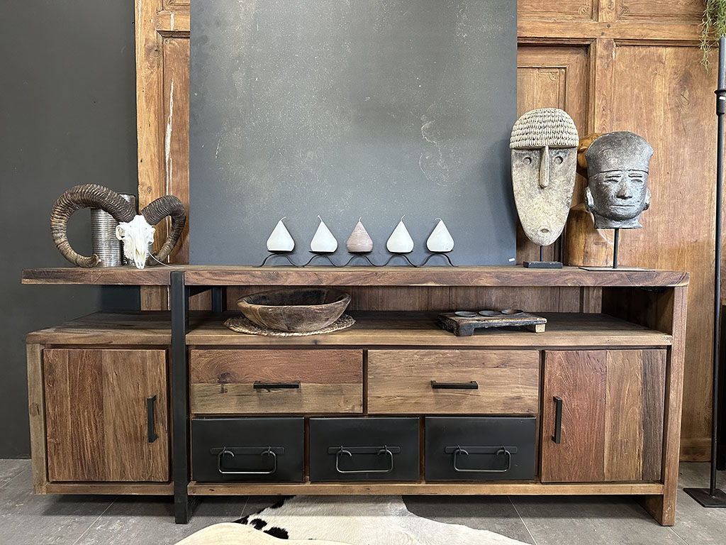 Door de combinatie van teakhout en metaal heeft dressoir Arthur een robuuste uitstraling!
