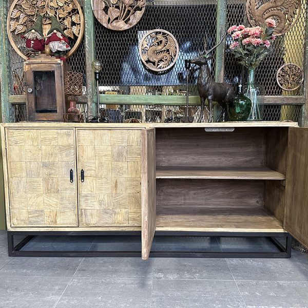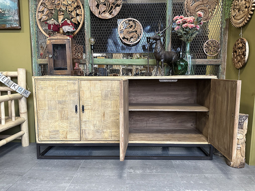 Door de combinatie van Chinees Elmwood en het metalen frame heeft dressoir Ravi een robuuste uitstraling!