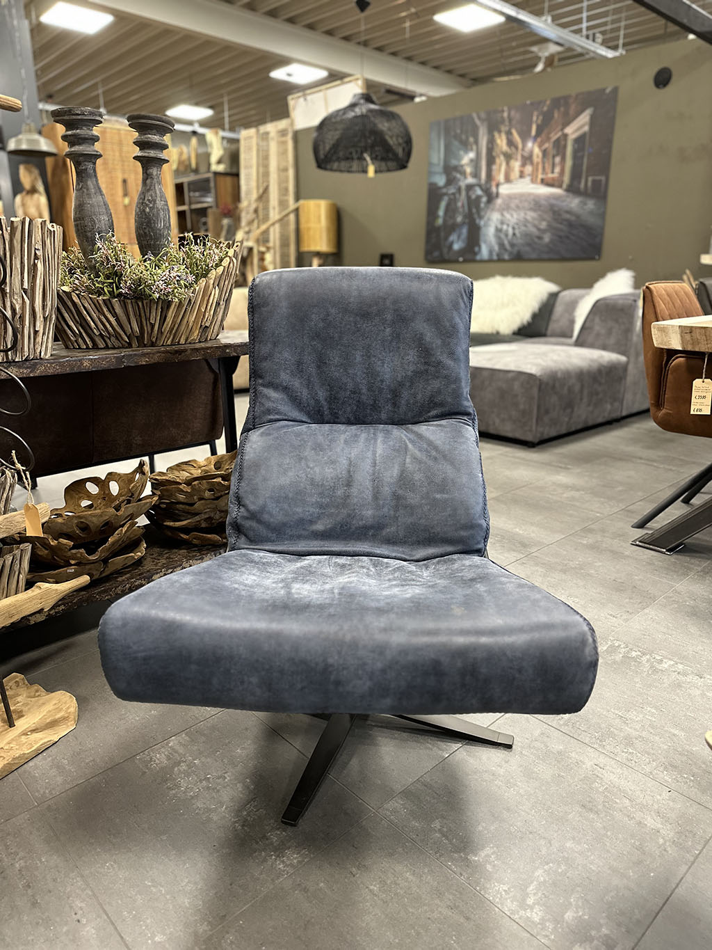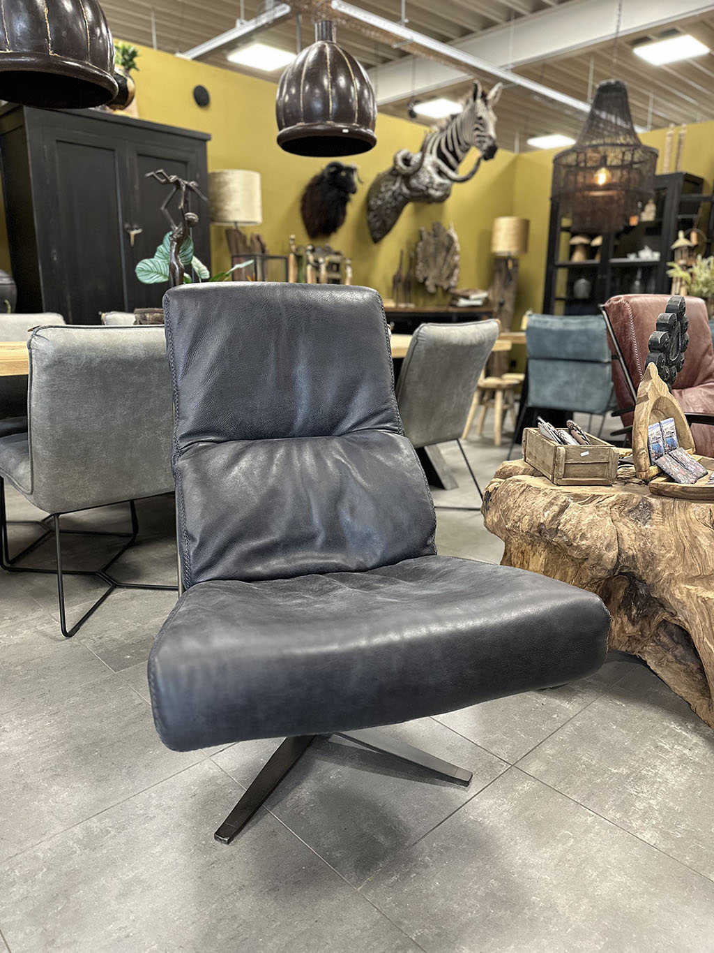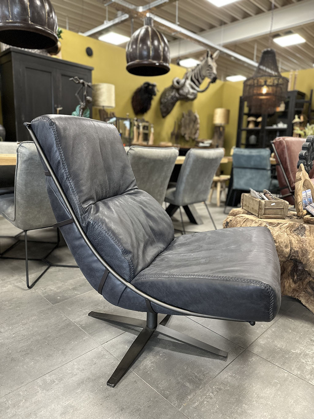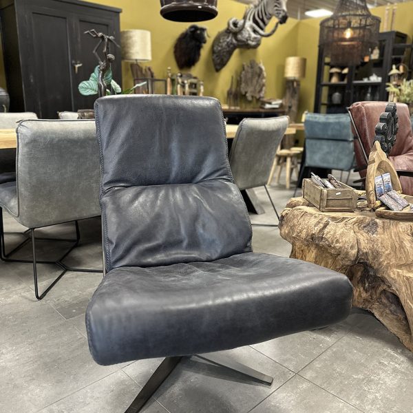 Deze draaifauteuil is te leveren in verschillende kleuren leder en verschillende stoffen.