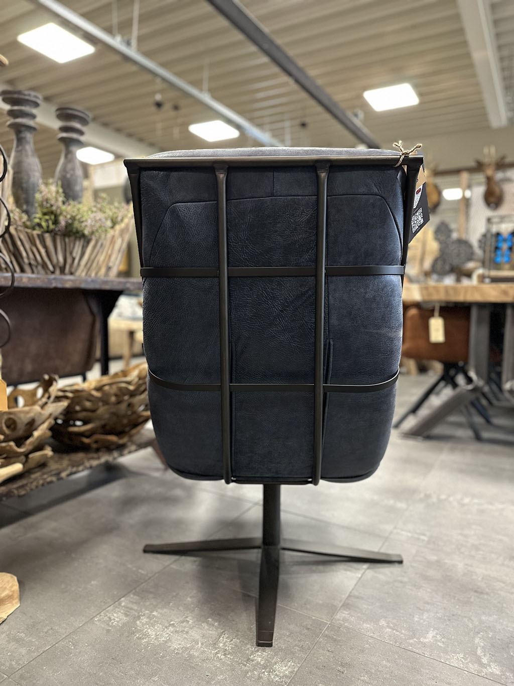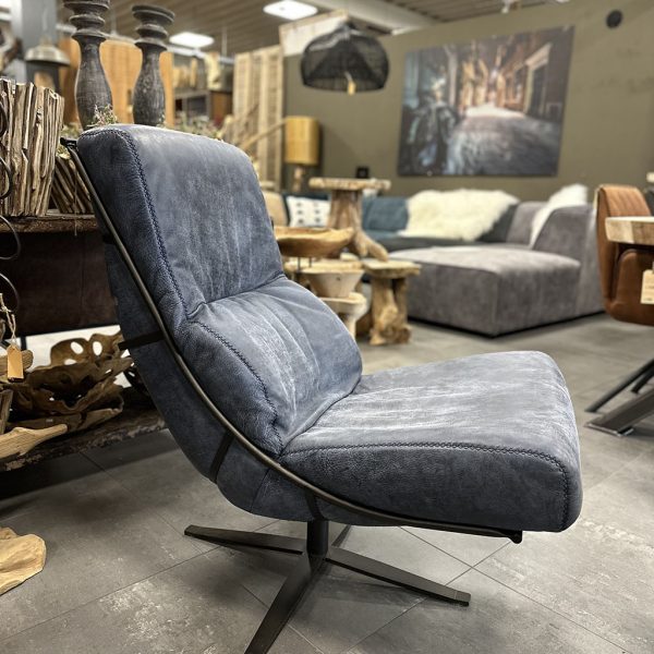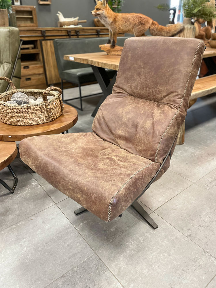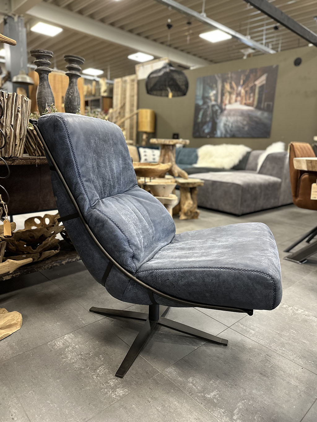 Deze draaifauteuil is te leveren in verschillende kleuren leder en verschillende stoffen.