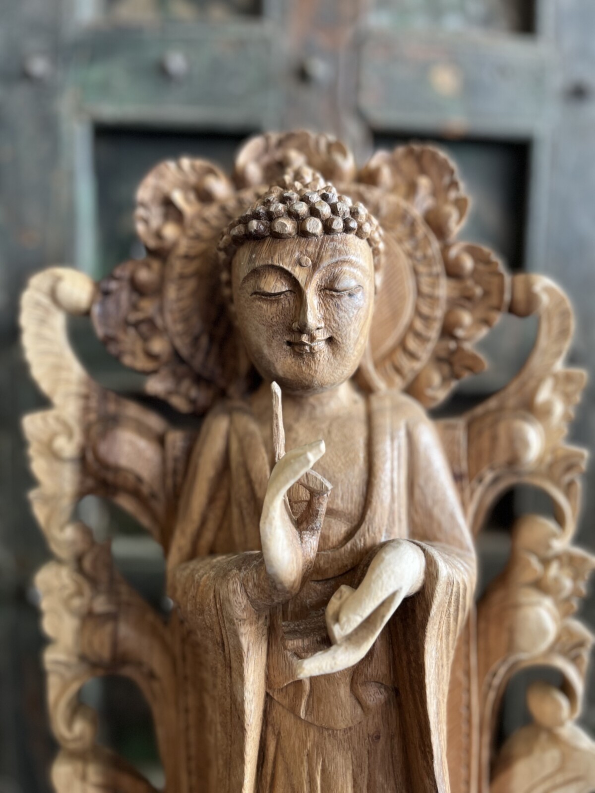 / Groot Houten Boeddha Beeld – Wijsheid Houtsnijwerk