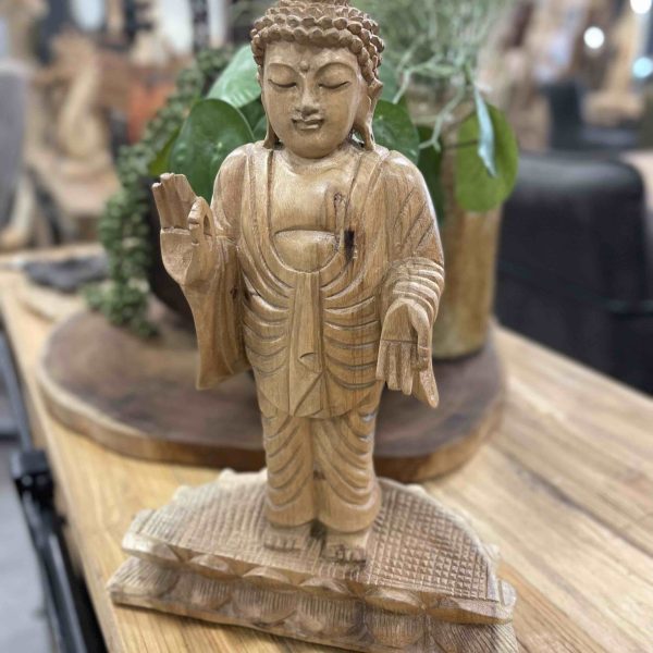 Met heel veel zorg is deze houtsnijwerk Boeddha gemaakt.