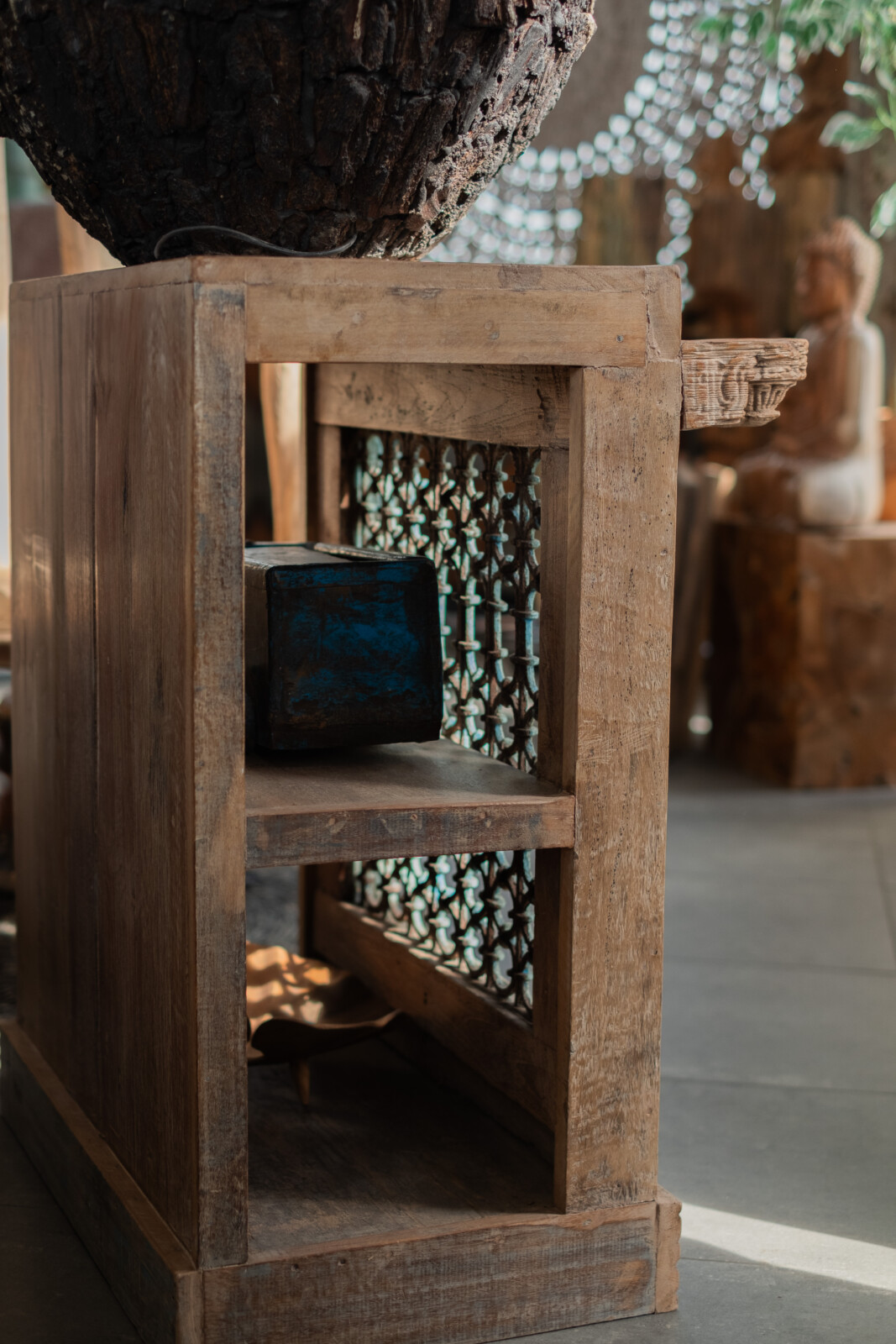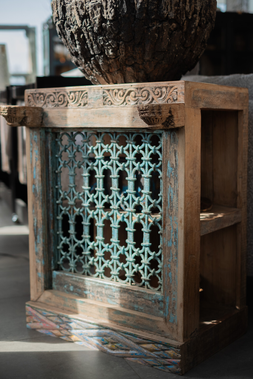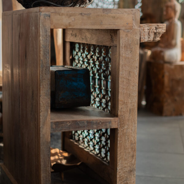 De kast is afkomstig uit India en kenmerkt zich door het gebruik van gerecycled hout en ambachtelijke afwerking. Hierdoor heeft deze kast subtiele kleurverschillen, gebruikssporen en een doorleefd karakter.