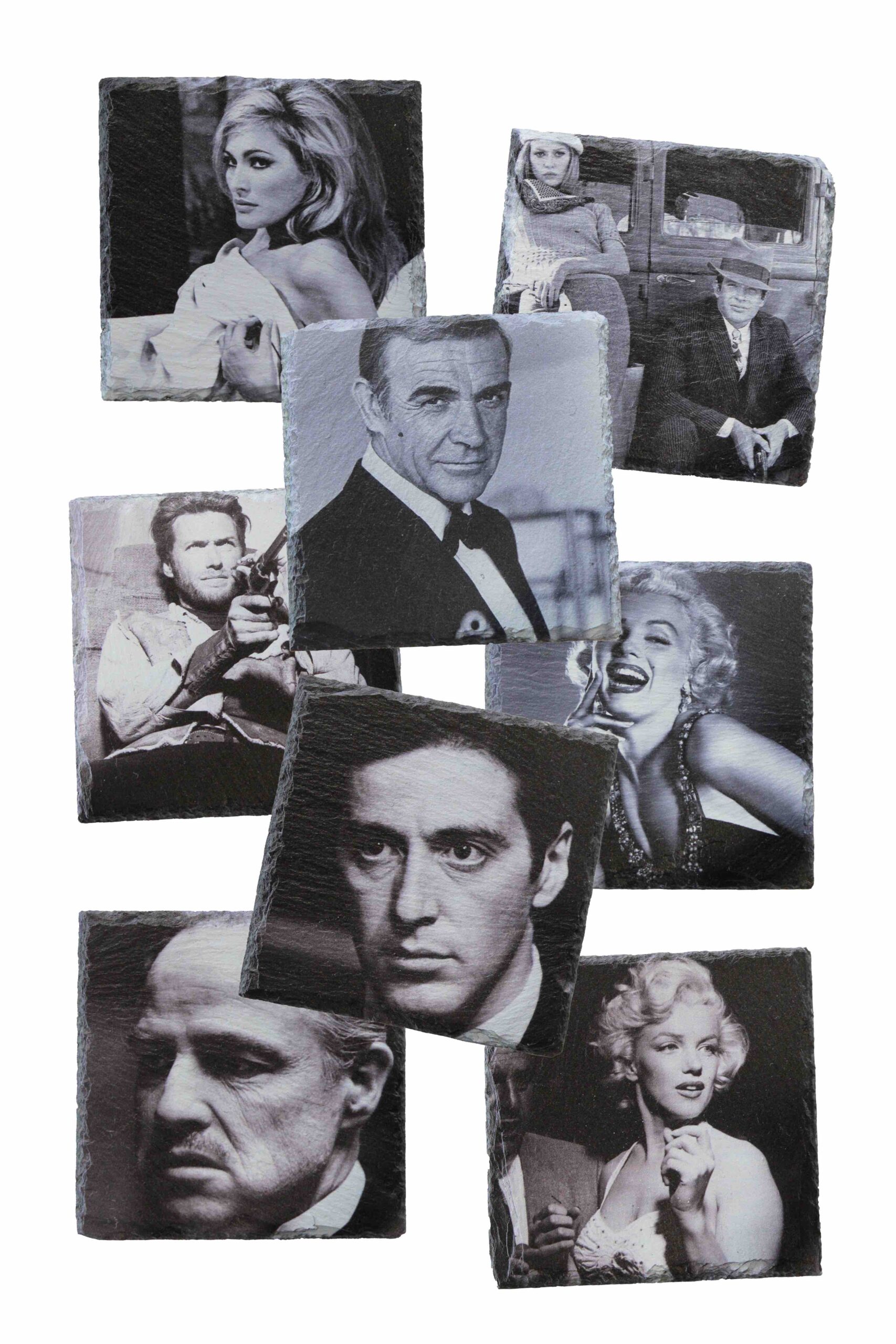 Wil je eens een andere onderzetter dan normaal dan is deze leistenen onderzetter met Marilyn Monroe print een blikvanger voor op tafel! We hebben deze onderzetters in 8 verschillende uitvoeringen van filmsterren. Niet alleen kunnen ze dienstdoen als onderzetter, maar zet ze in een houder en je hebt een leuk schilderijtje op je kast.