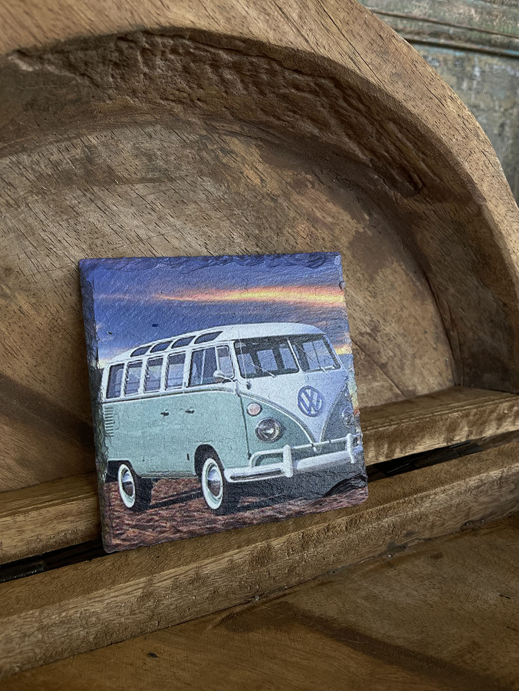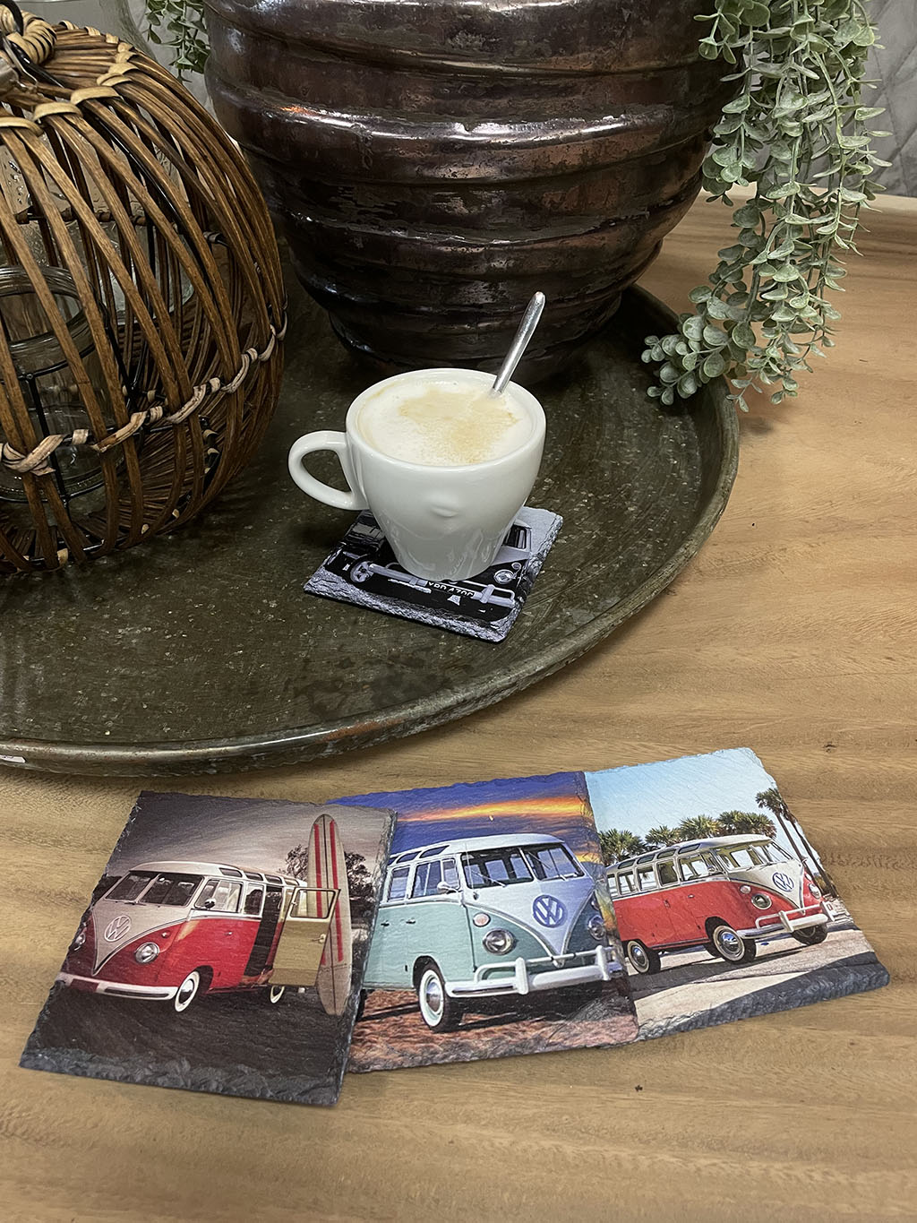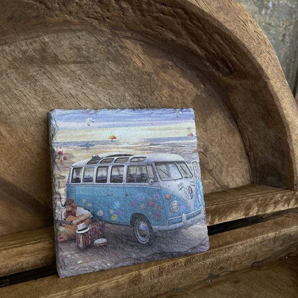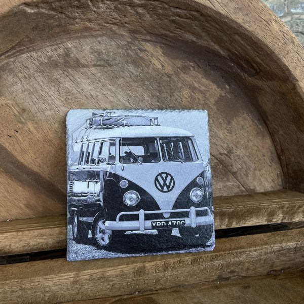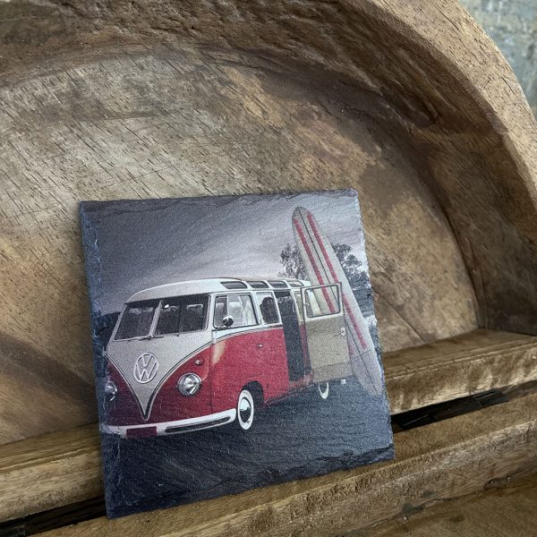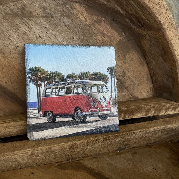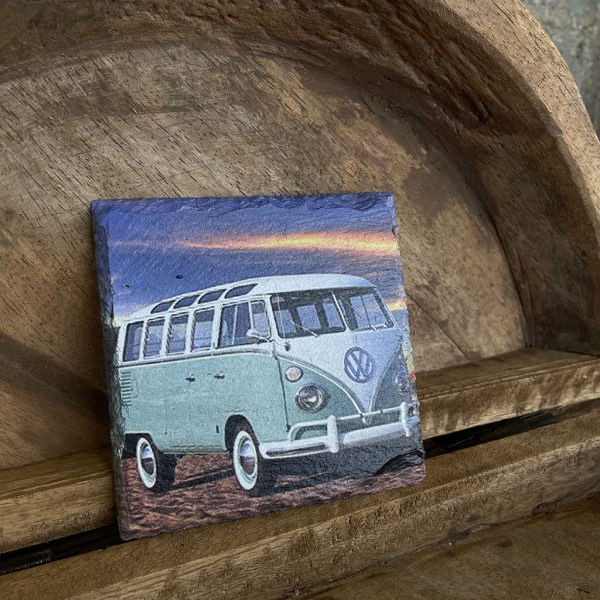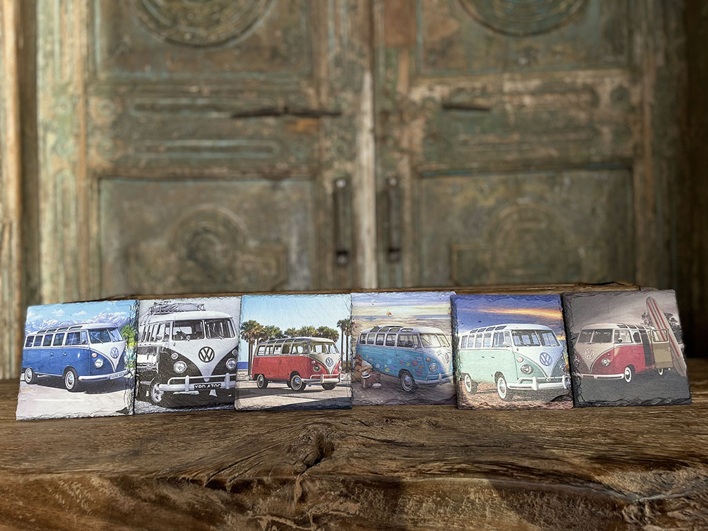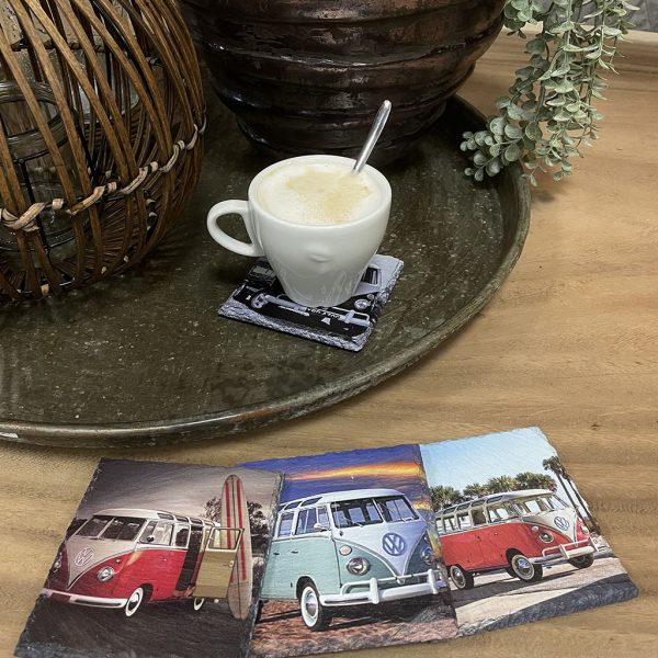 Wil je eens een andere onderzetter dan normaal? Dan zijn deze leistenen onderzetters met verschillende prints van Volkswagen busjes een blikvanger op tafel!