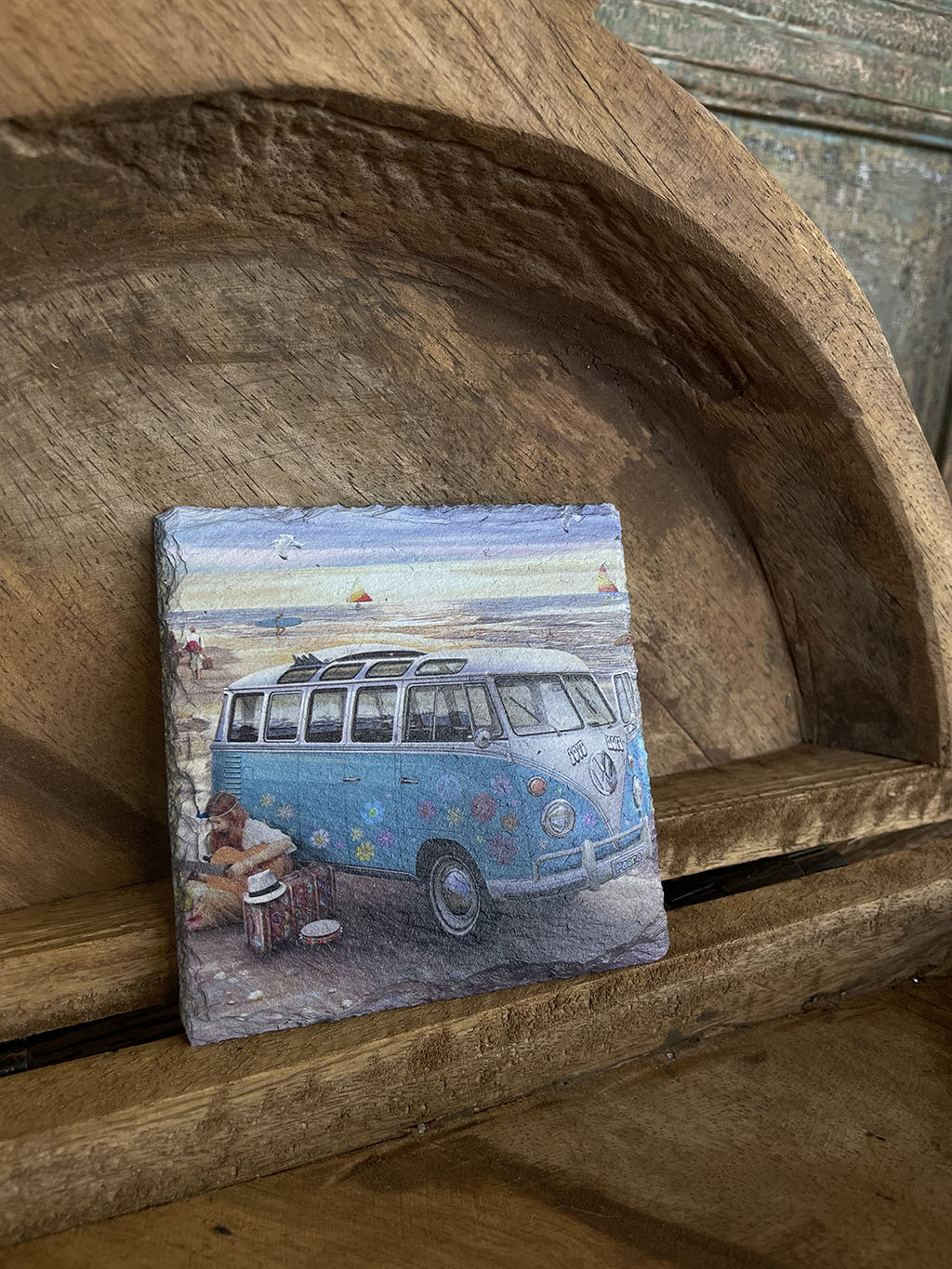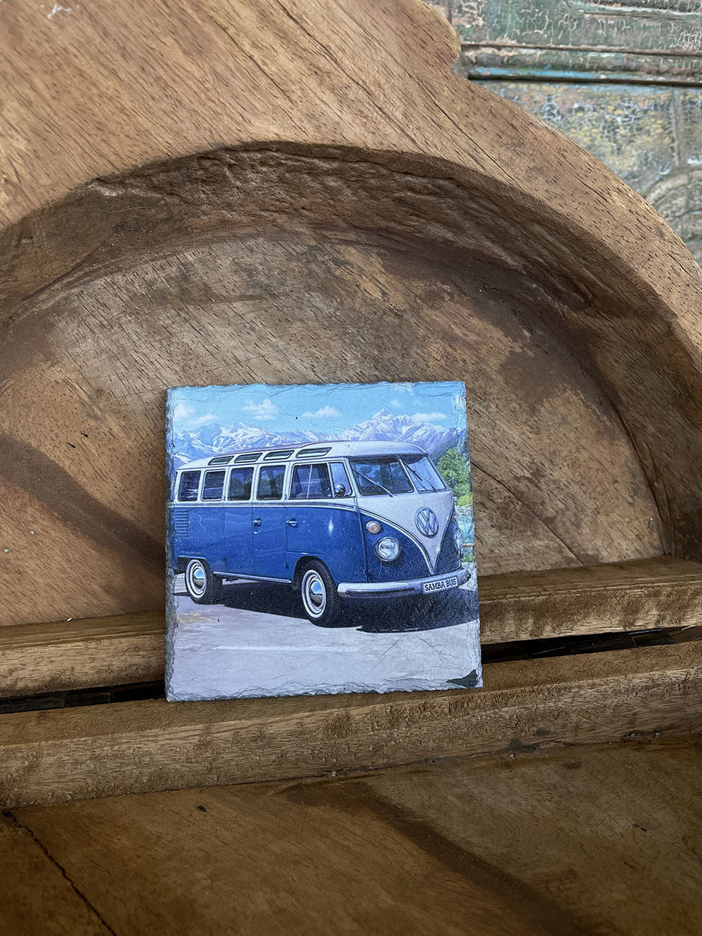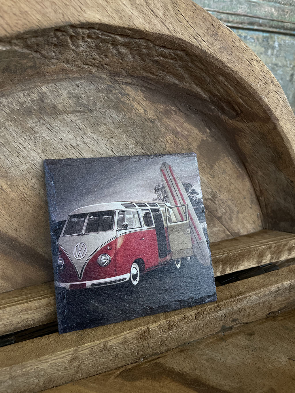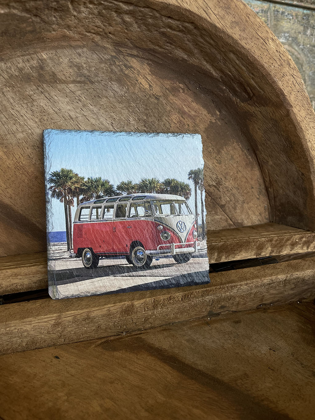 Wil je eens een andere onderzetter dan normaal? Dan zijn deze leistenen onderzetters met verschillende prints van Volkswagen busjes een blikvanger op tafel!