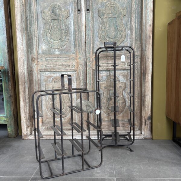 Dit metalen wijnrek heeft een robuust ontwerp en is geschikt voor het opbergen van meerdere wijnflessen. Door de open structuur blijven de flessen goed zichtbaar en makkelijk bereikbaar.
