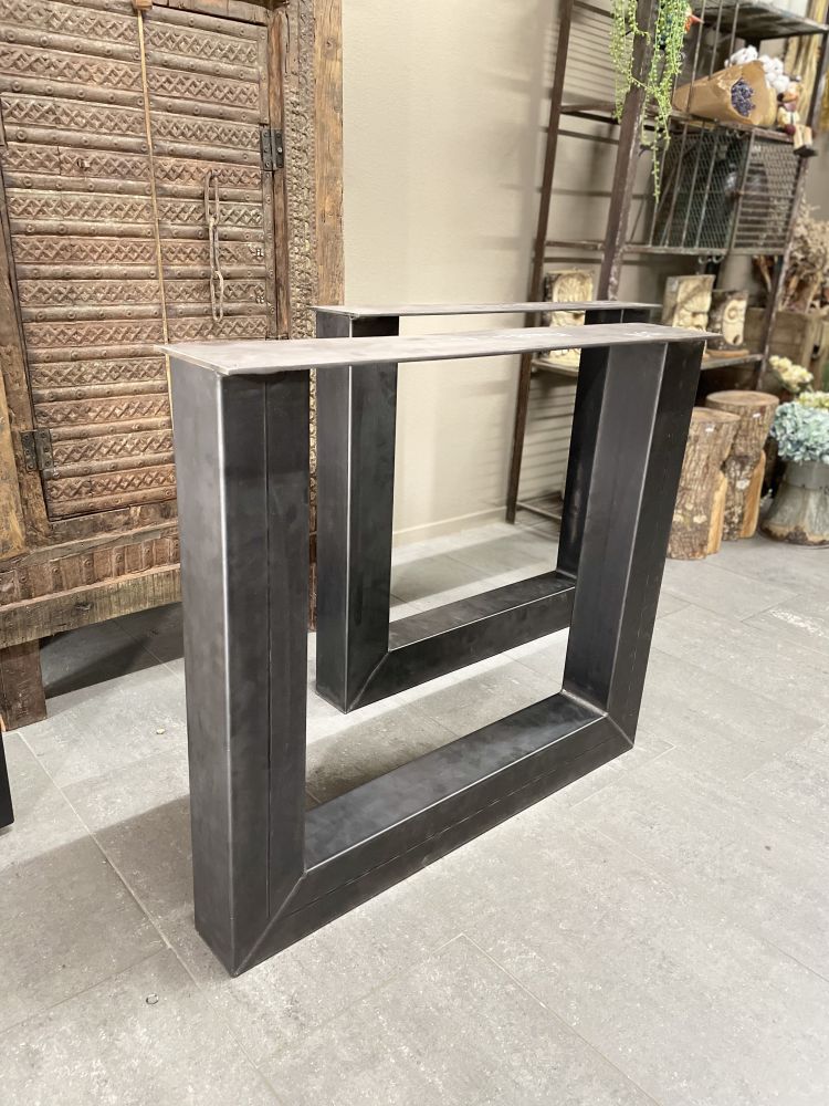 Deze stoere tafelonderstellen zijn handgemaakt door onze staalbewerkers.