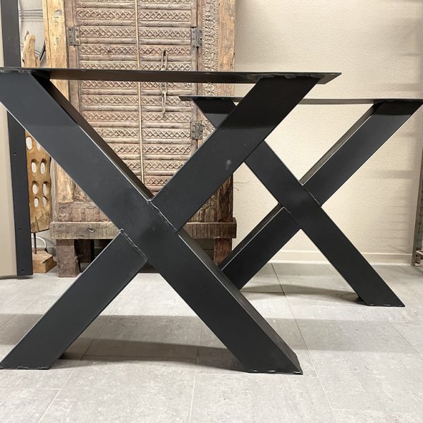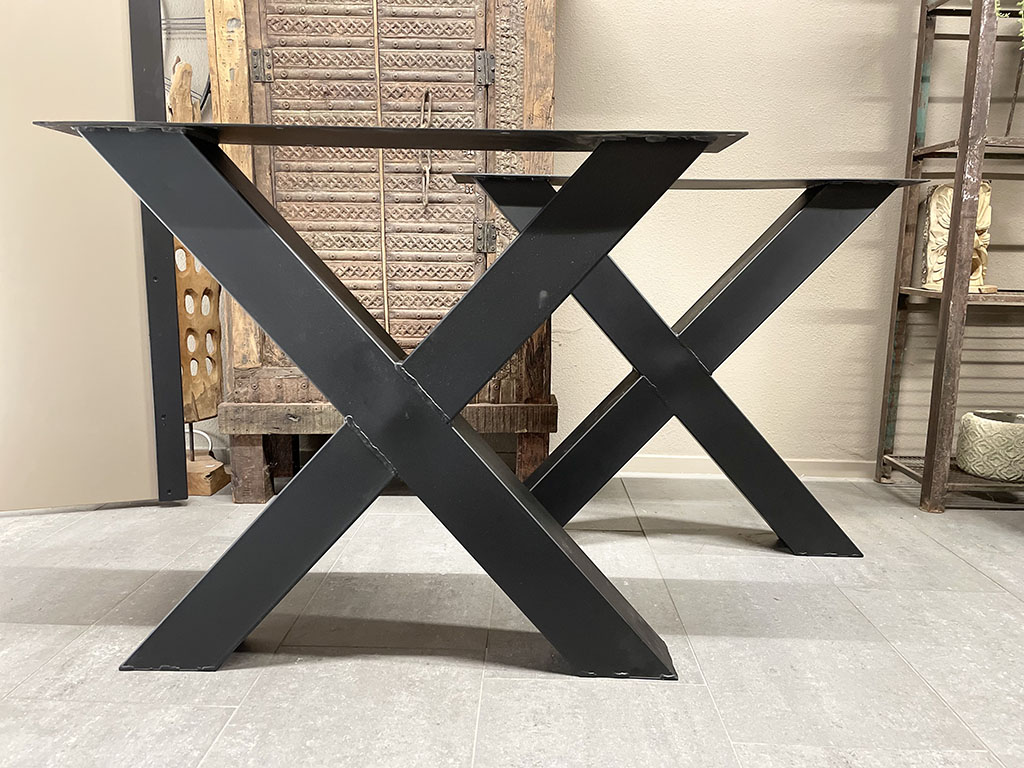 Deze stoere tafelonderstellen zijn handgemaakt door onze staalbewerkers.