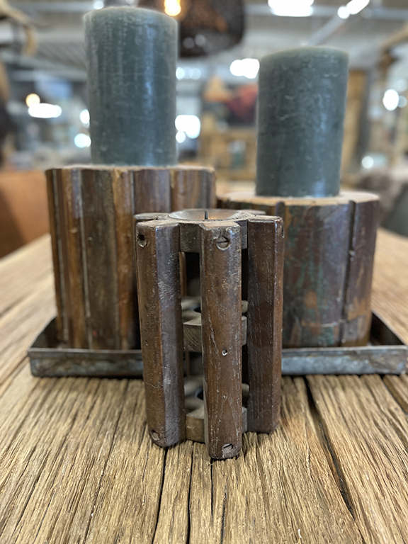 Deze kandelaars gemaakt van oude spoelen staan super op je tafel, vensterbank of op een mooi dressoir.