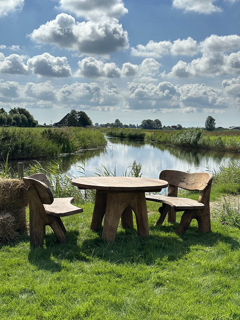 Deze handgemaakte tuinset van massief eikenhout is een perfecte combinatie van ambachtelijk vakmanschap en een robuuste, natuurlijke uitstraling. Door het gebruik van echte eiken vertakkingen is geen enkele tuinset hetzelfde.