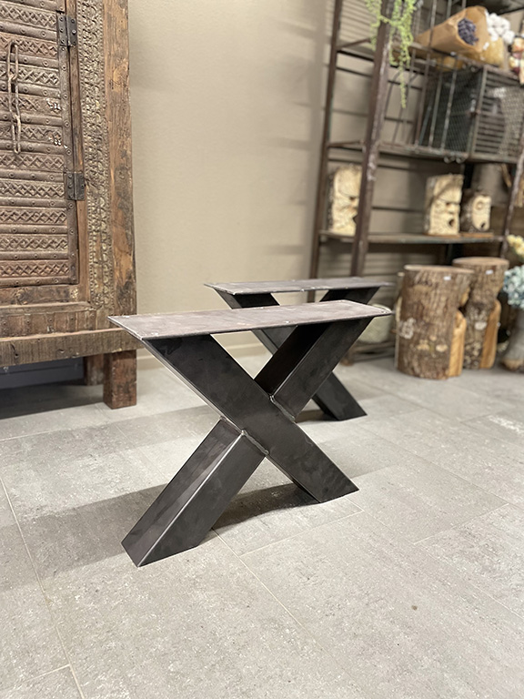Deze stoere tafelonderstellen zijn handgemaakt door onze staalbewerkers.