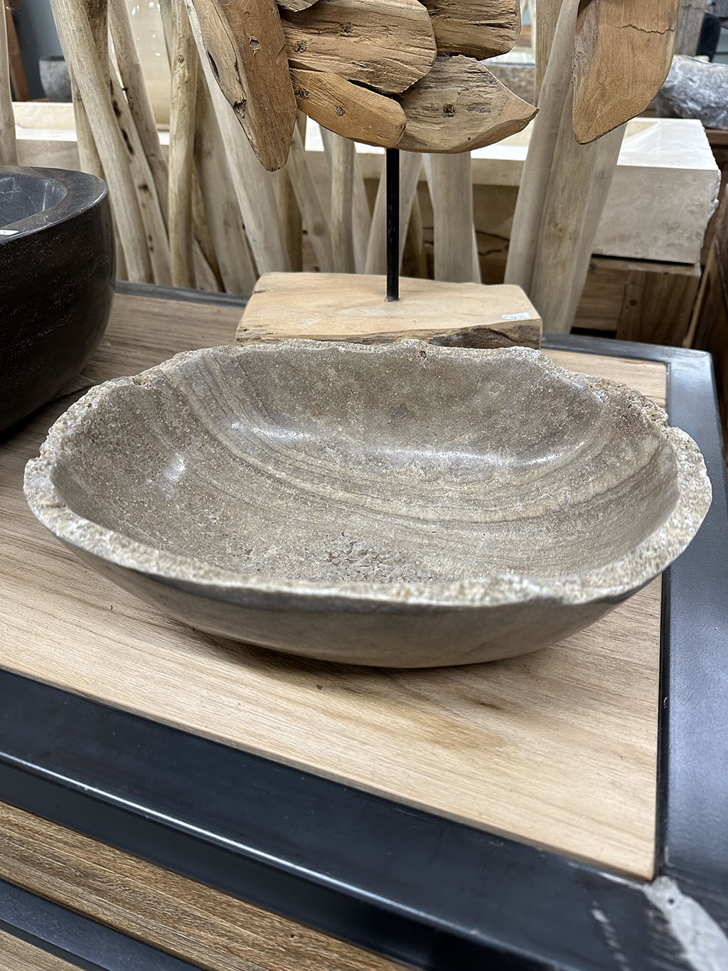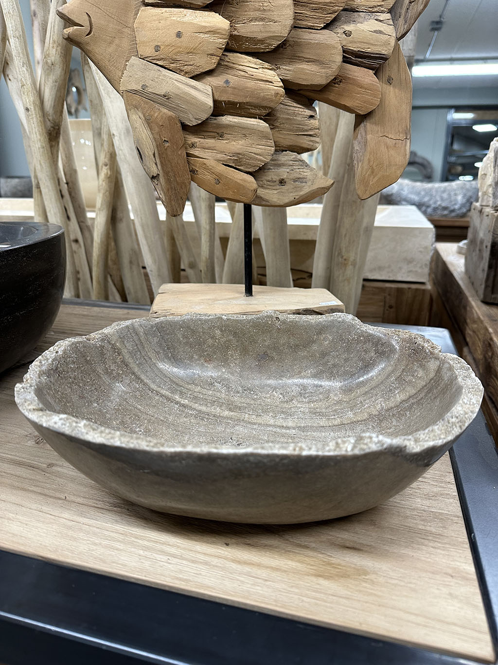 De bovenkant is ruw gehouden zodat de kom een robuust en natuurlijk uiterlijk krijgt.