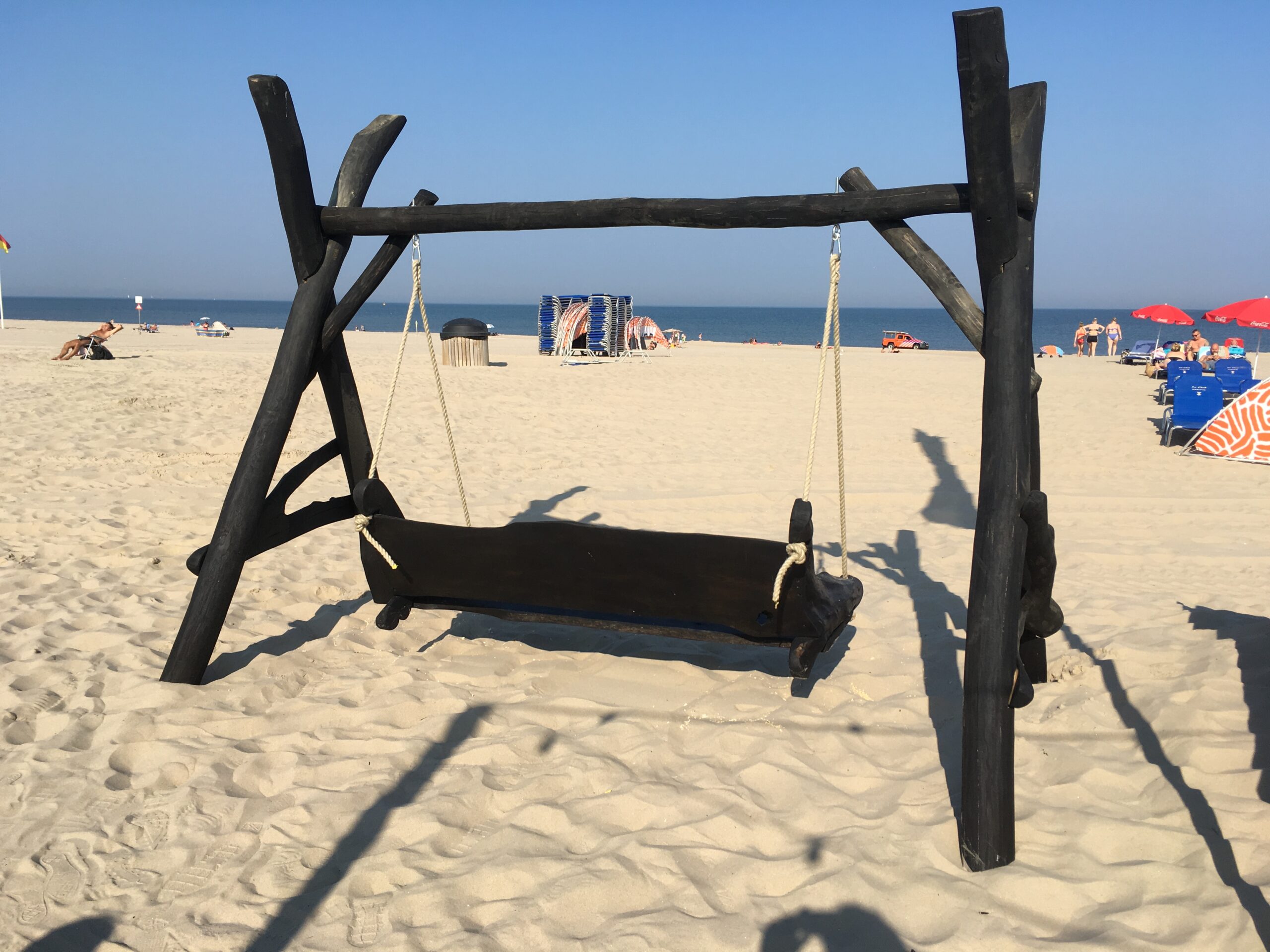 Voor de banken is de natuurlijke vorm van het hout behouden. Daardoor krijgt iedere schommel zijn eigen karakter.
