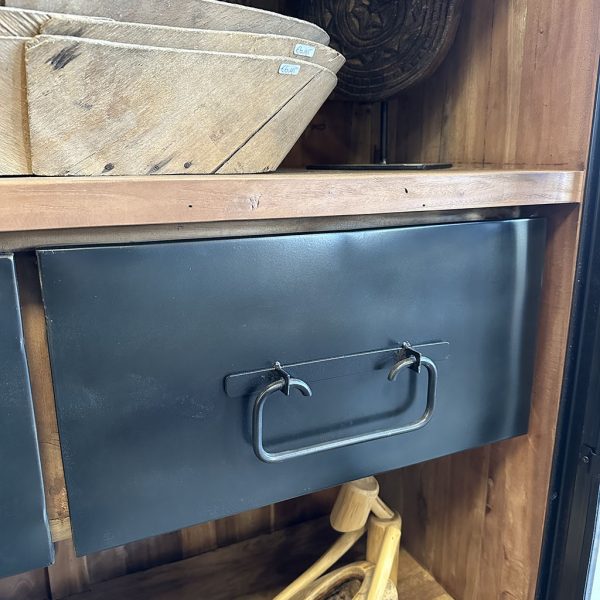 Servieskast Arthur is een stoere top kwaliteit kast gemaakt van zwaar teakhout en staal.