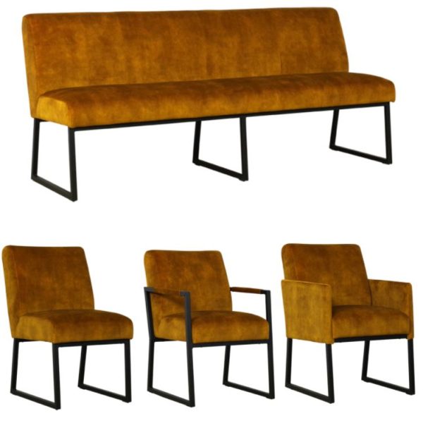Door de combinatie van de stof en het metalen onderstel krijgt de stoel een moderne luxe uitstraling waardoor hij perfect in verschillende interieurstijlen past.
