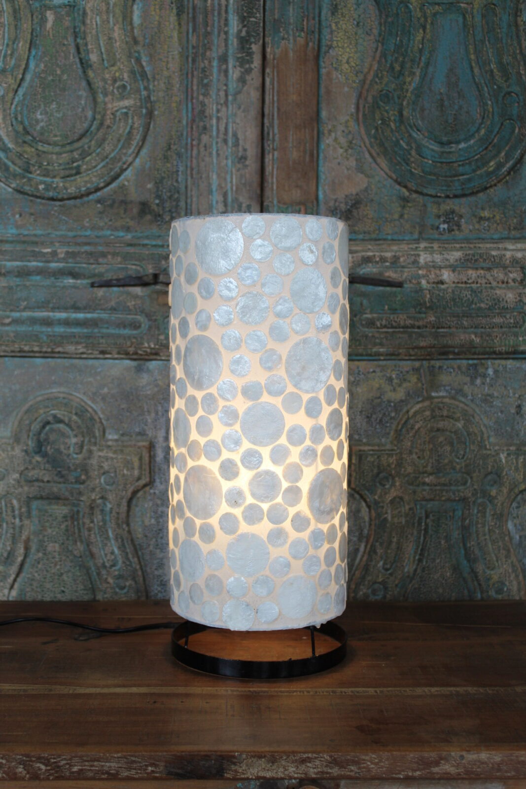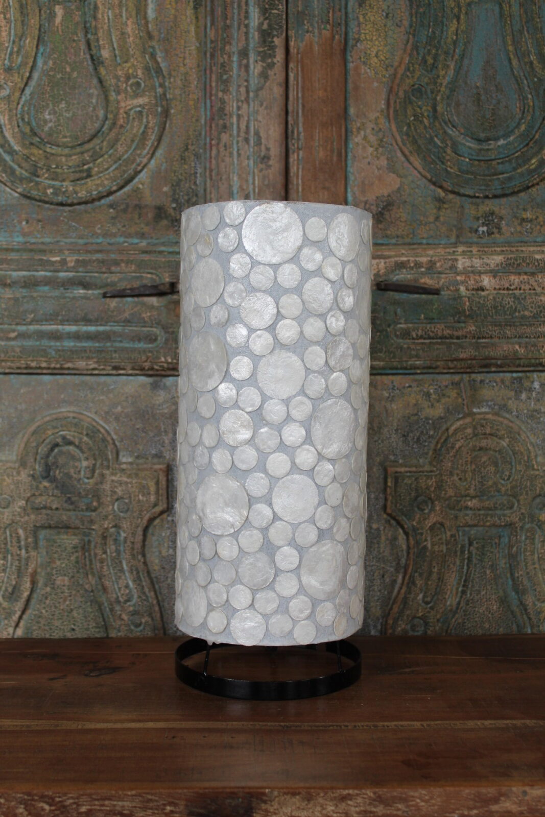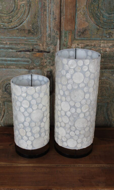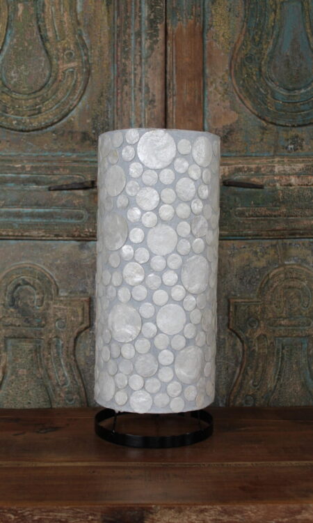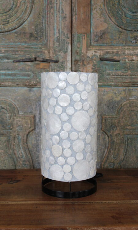 Tafellamp met Witte Schelp Mozaïek – Cilindervormige Sfeerlamp