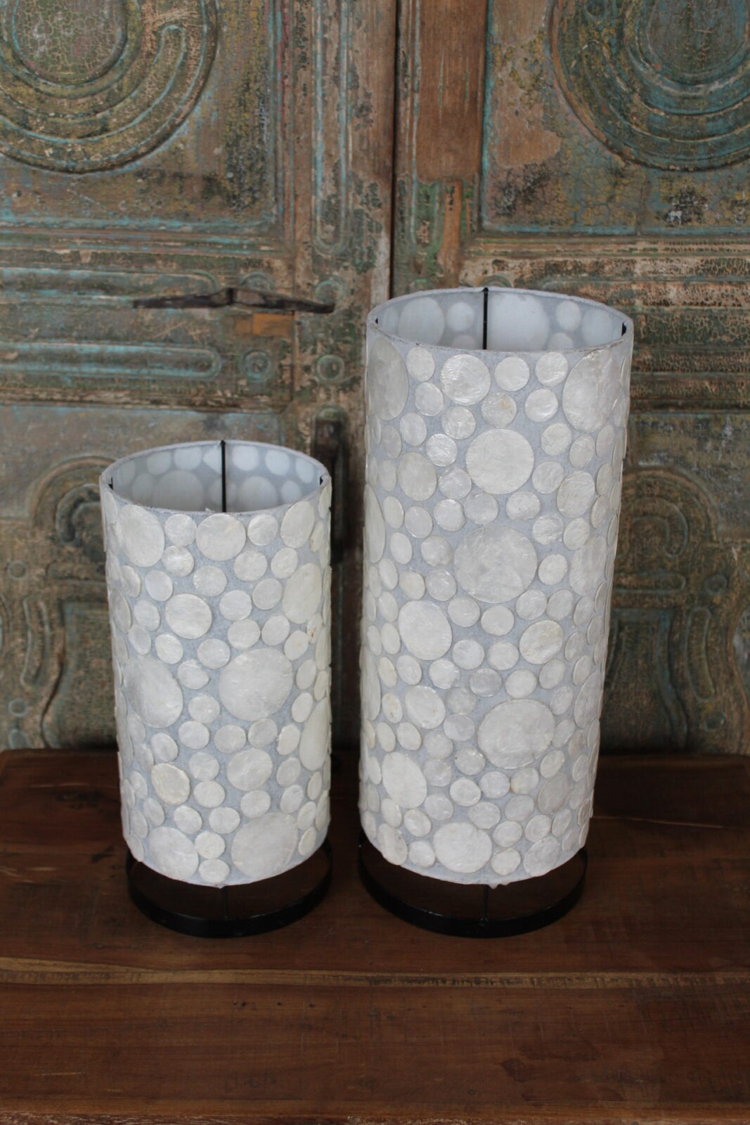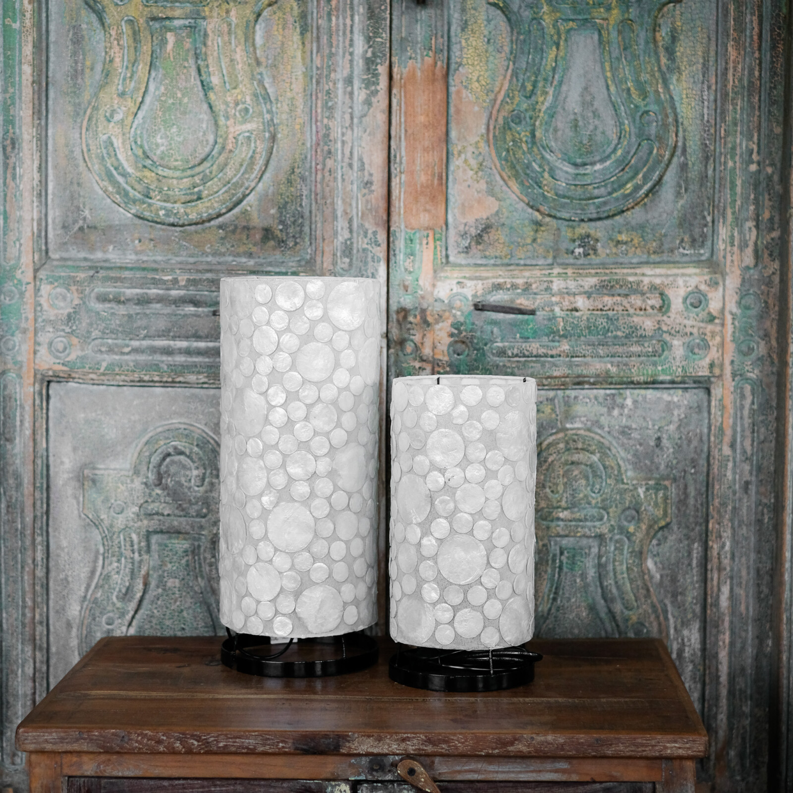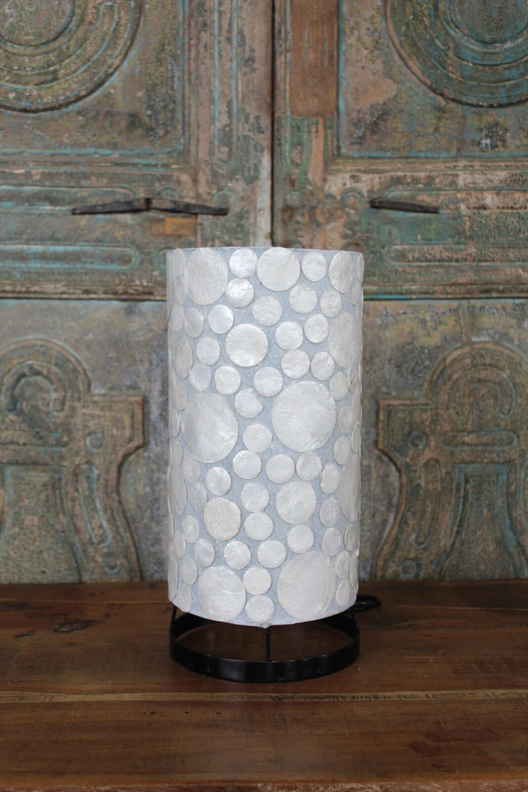 Tafellamp met Witte Schelp Mozaïek – Cilindervormige Sfeerlamp