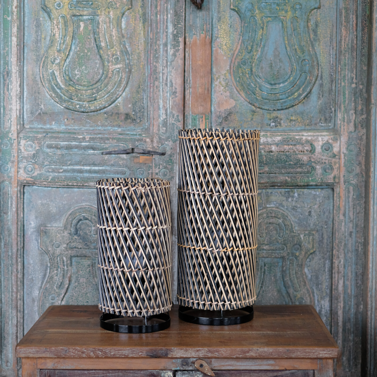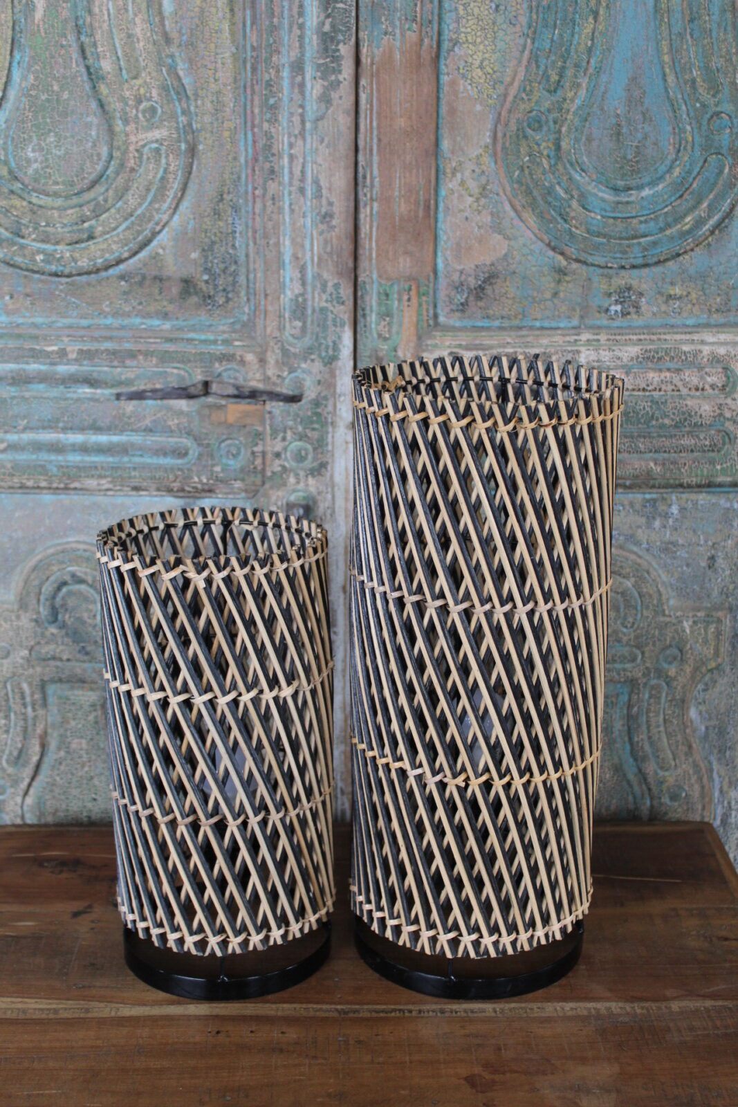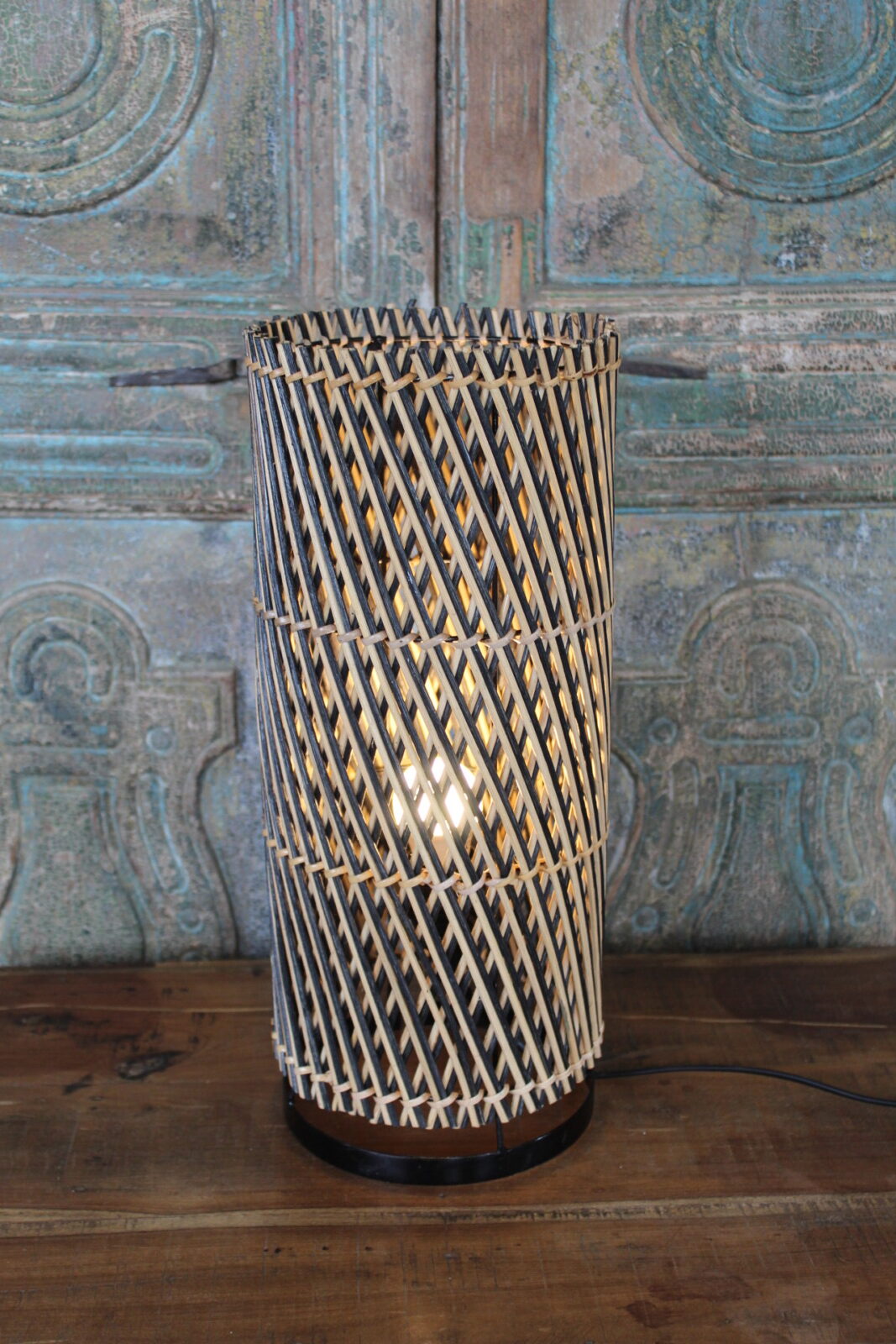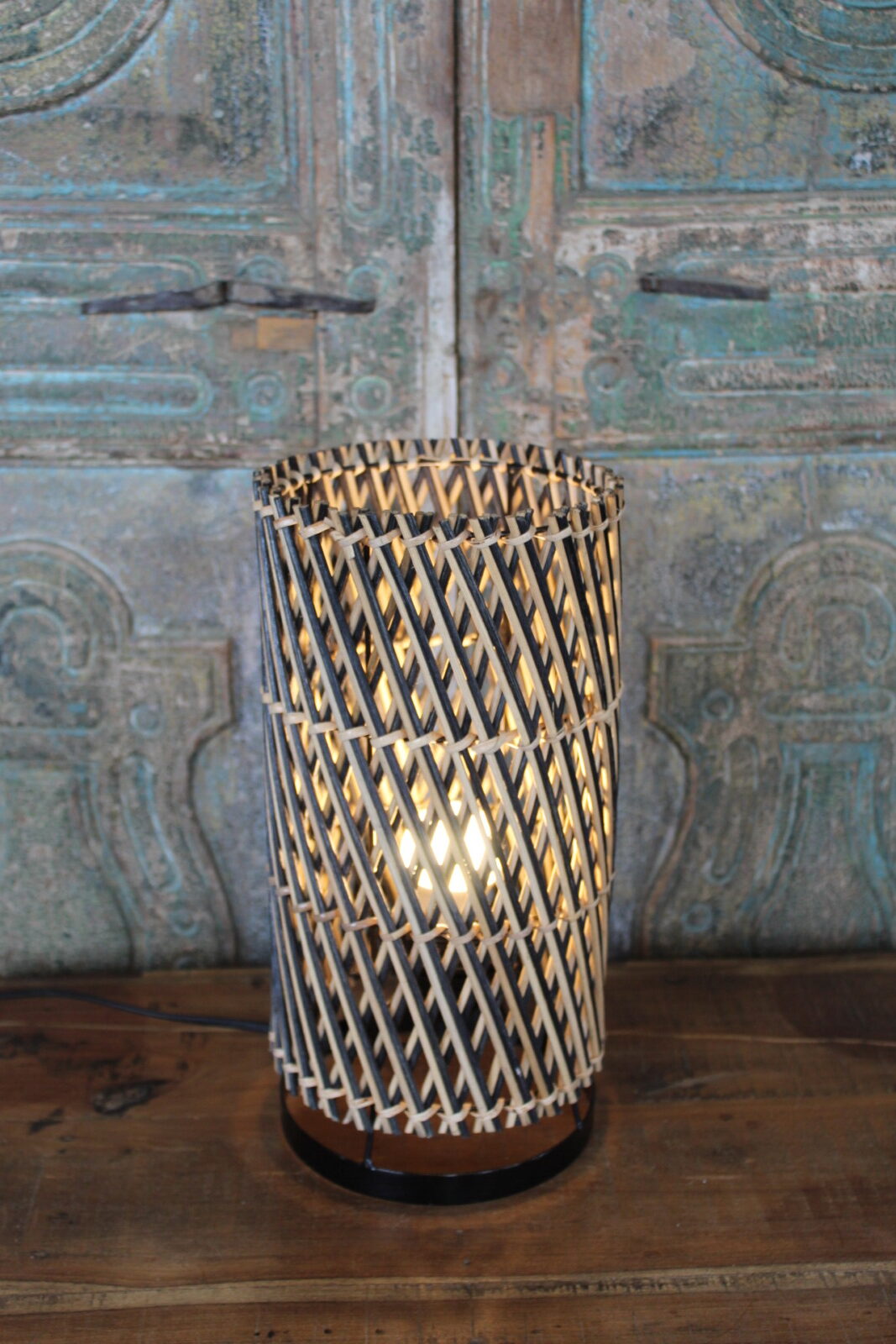 Tafellamp van Gevlochten Bamboe – Cilinder Sfeerlamp