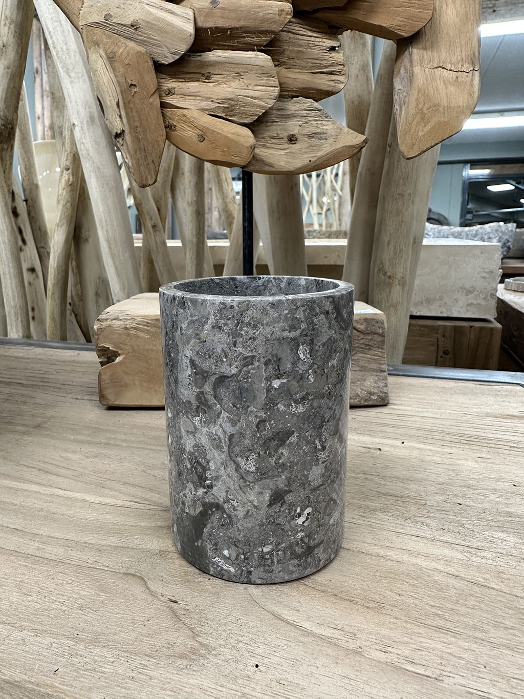 Deze handige grijs marmeren tandenborstel beker is goed te combineren met onze wasbakken en zeepbakjes van grijs marmer.