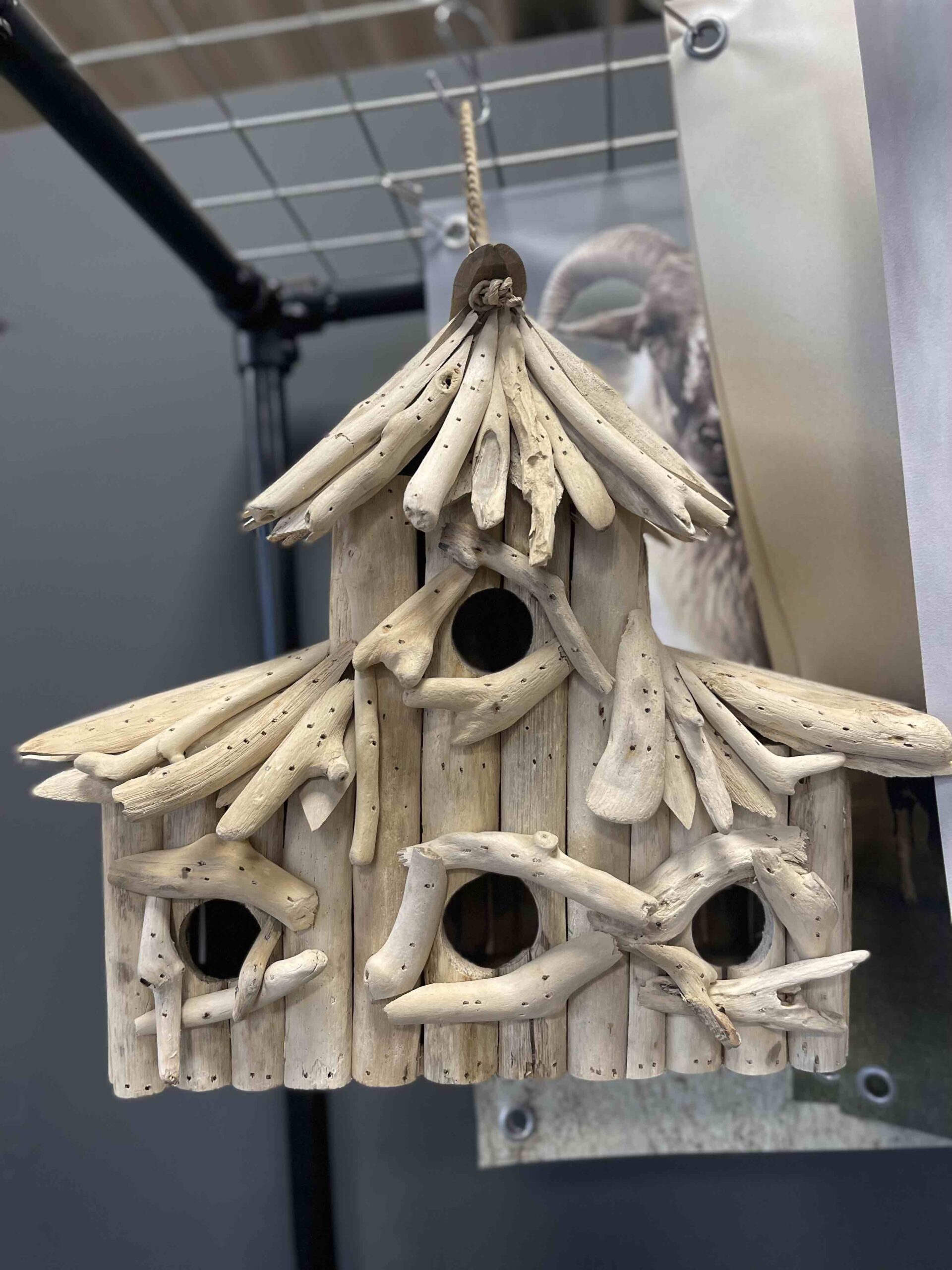 Dan is deze vogelopvang gemaakt van een resthout en drijfhout helemaal perfect.
