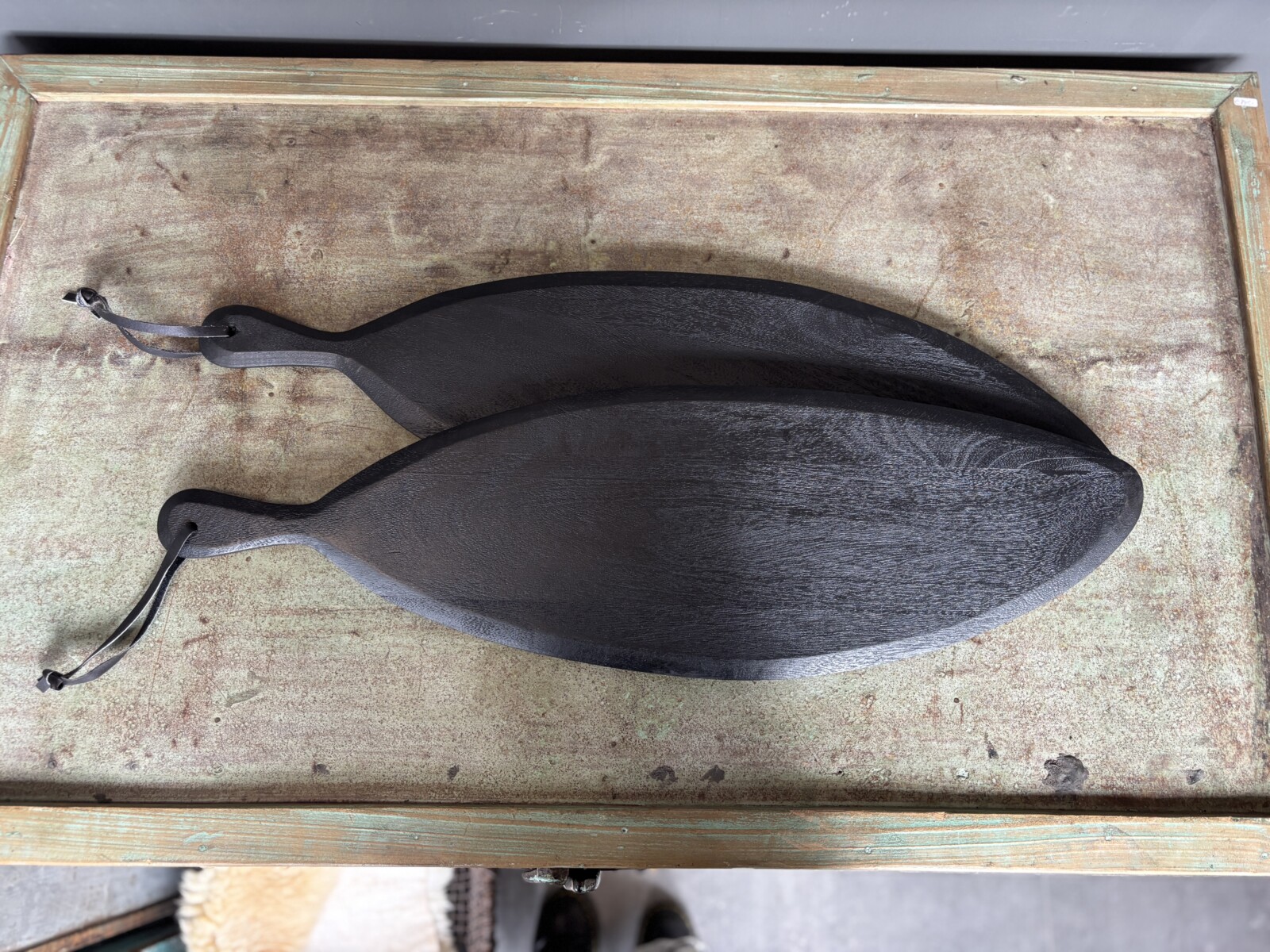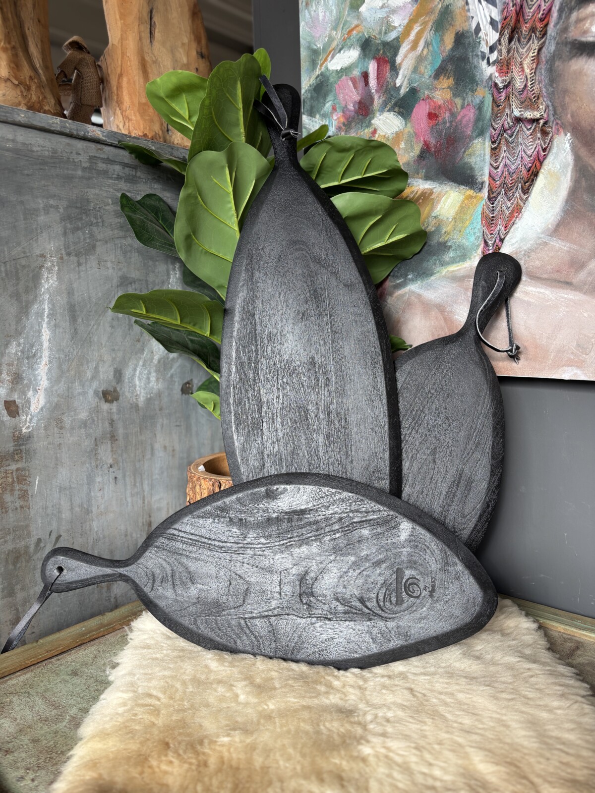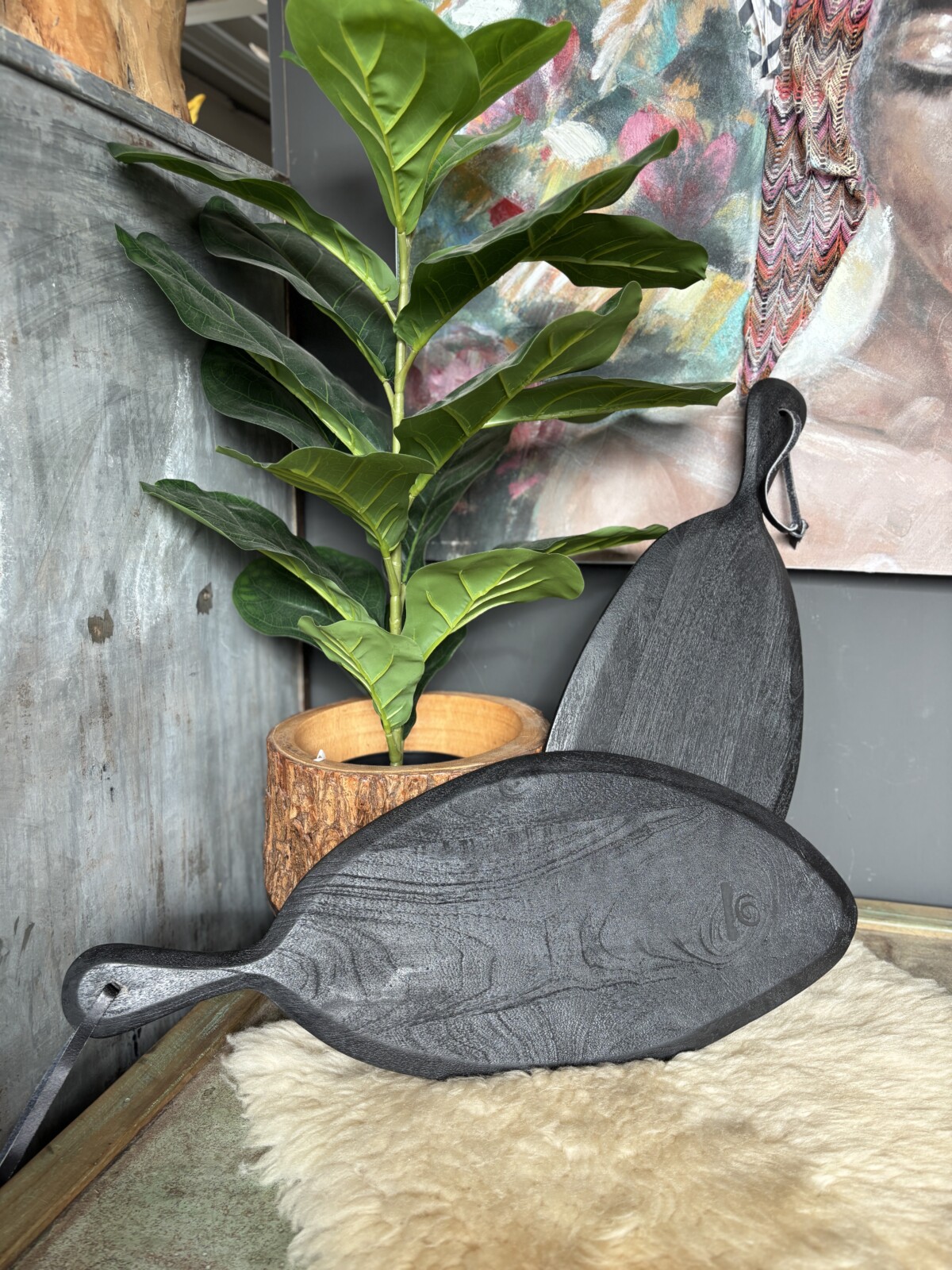 Deze zwarte tapasplank is een praktische en decoratieve toevoeging voor het serveren van hapjes. De organische vorm en donkere afwerking geven de plank een stoere en moderne uitstraling.