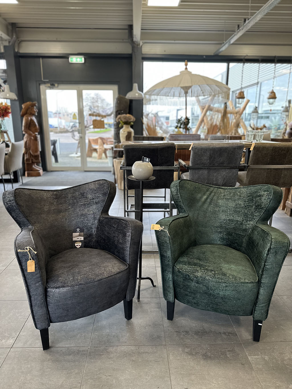 Deze fauteuil is verkrijgbaar in verschillende kleuren en stofsoorten.