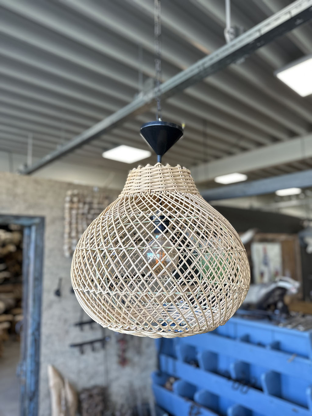 Lamp Marit is een peervormige rotanlamp en verkrijgbaar in een naturel uitvoering.