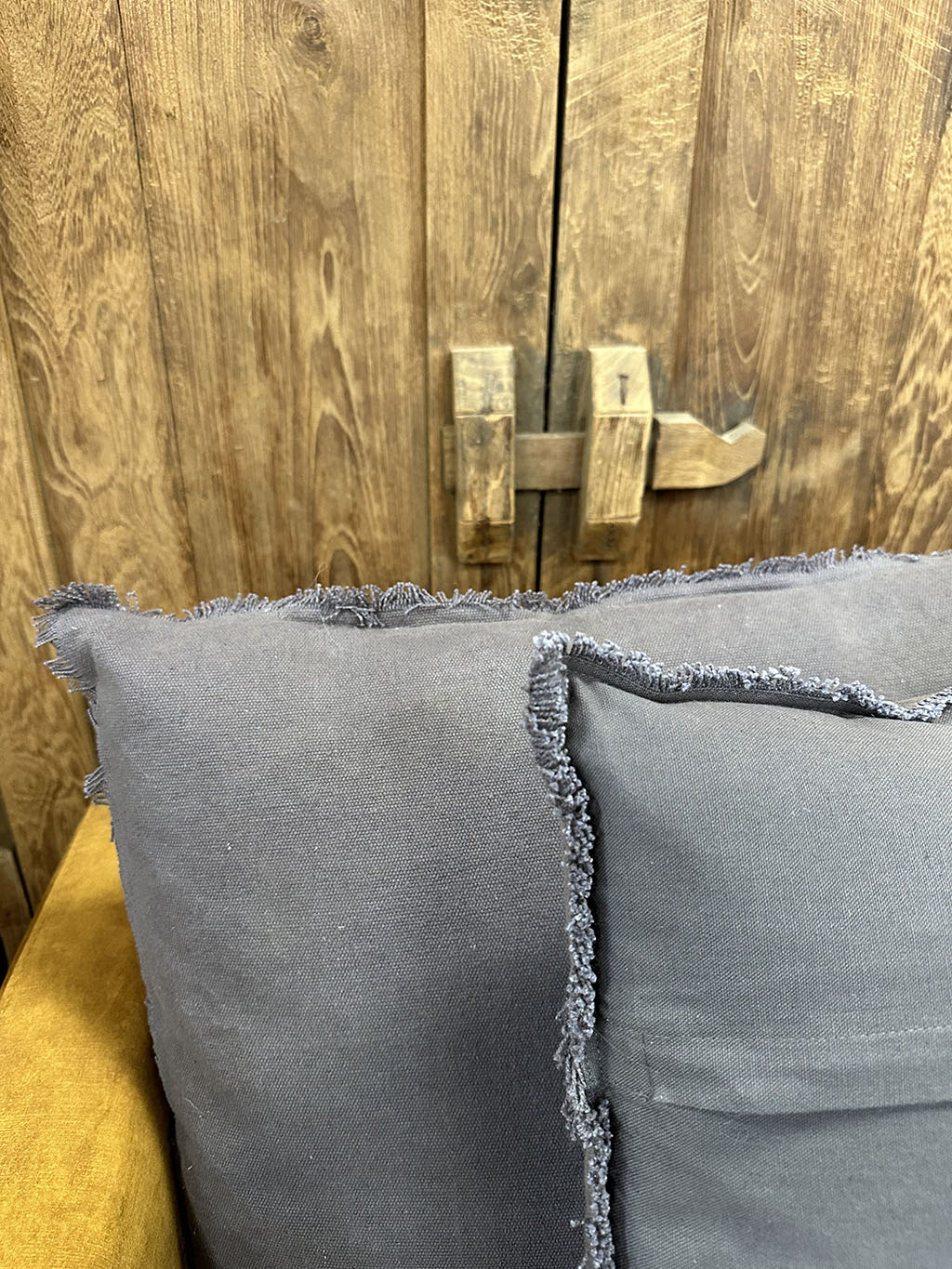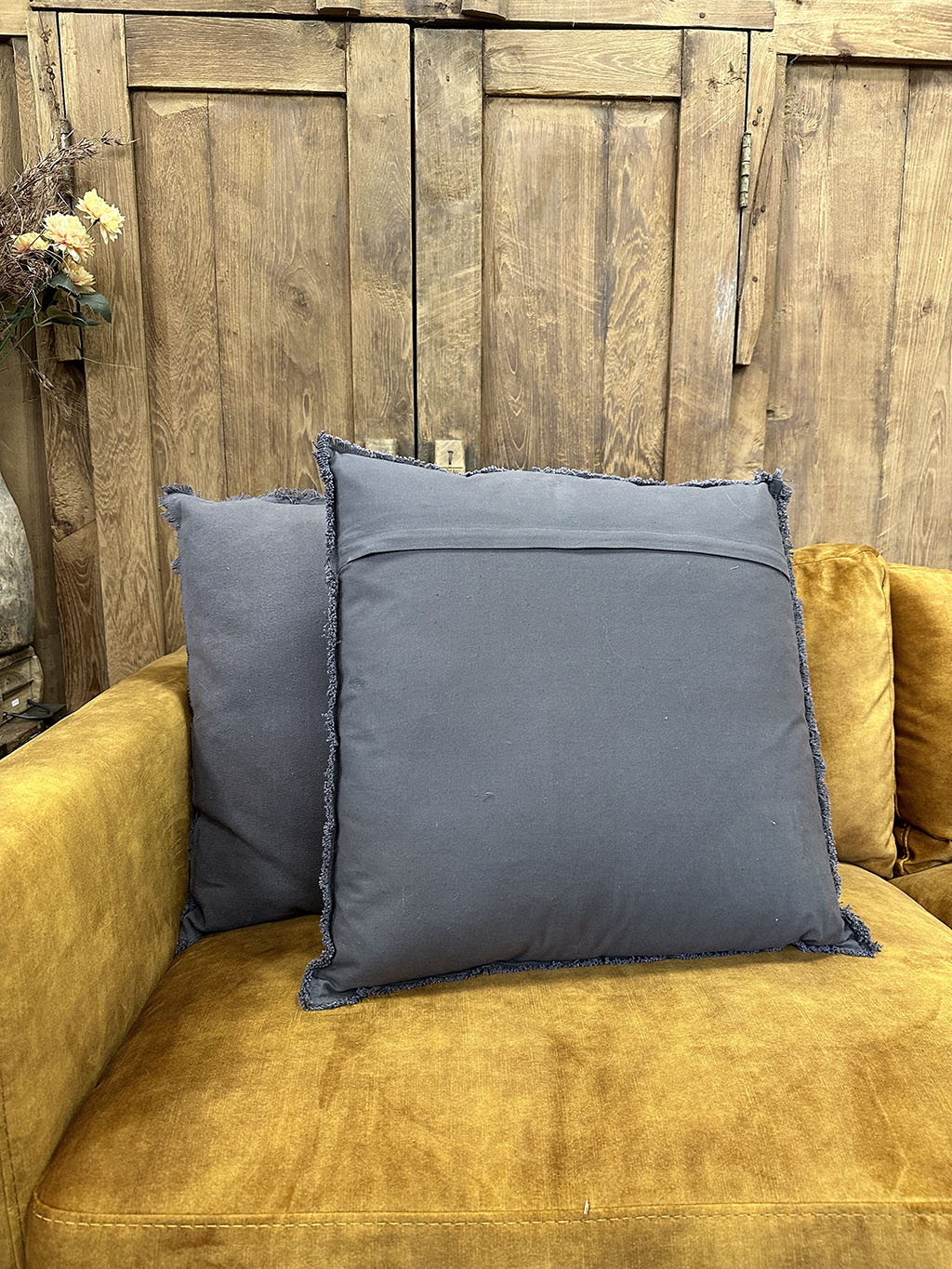 Deze grijze grof geweven kussen is mooi te combineren met andere kussens die we in onze collectie hebben.